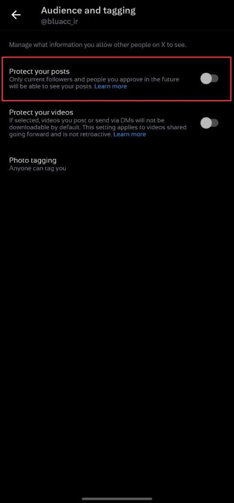 قدم چهارم: حالت Protected Tweets را غیرفعال کنید